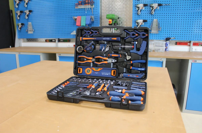 Например, в ассортименте марки Dexter имеются наборы, включающие более сотни инструментов и приспособлений. В кейсе можно найти инструменты на все случаи жизни: гаечные ключи, отвертки, плоскогубцы, ножовку, молоток, строительный уровень, измерительную рулетку и многое другое. К ним прилагаются головки и насадки разных форм и размеров, а также удлинители и переходники, позволяющие работать в труднодоступных местах. Иными словами, с этим комплектом вы сможете выполнять практически любые слесарные и монтажные работы.